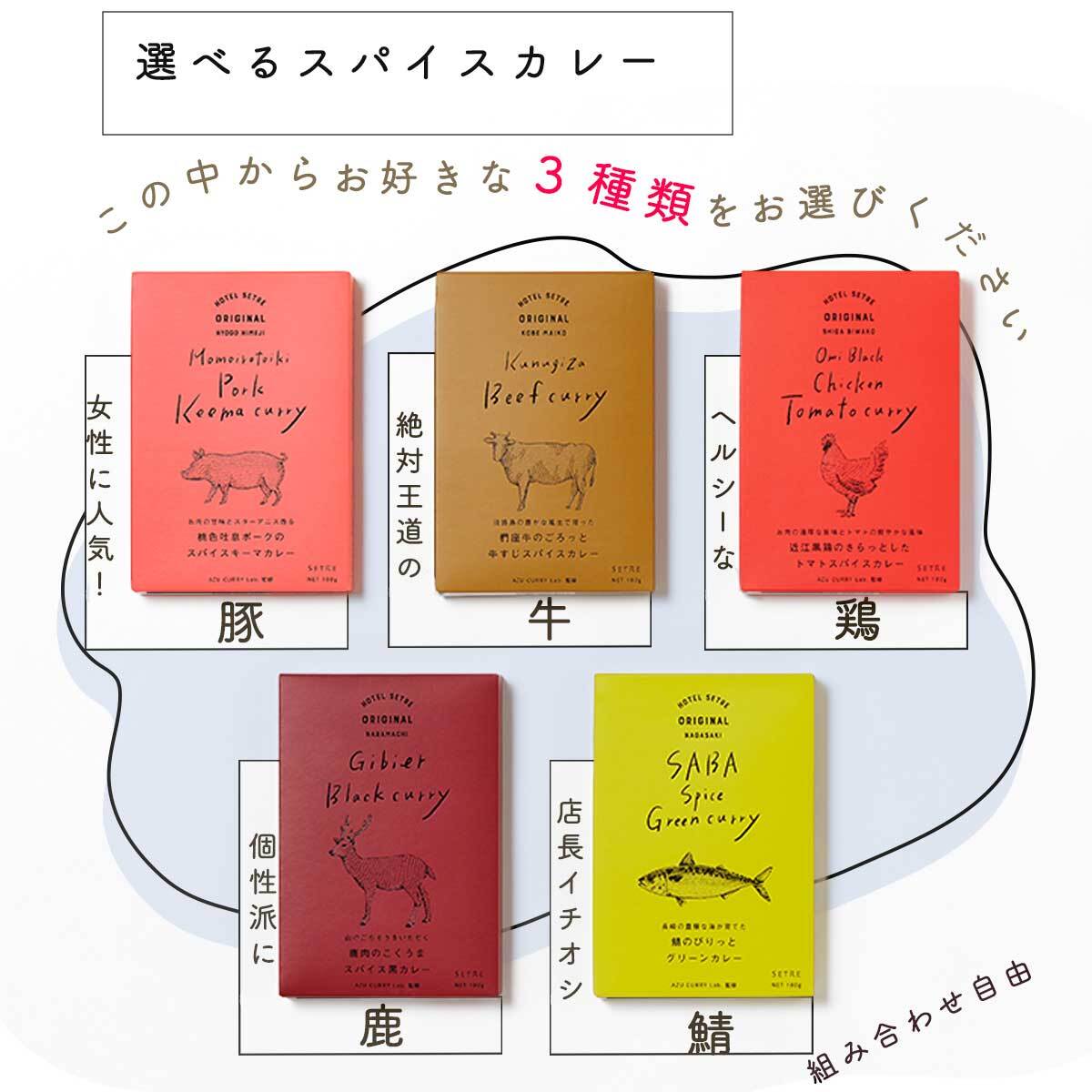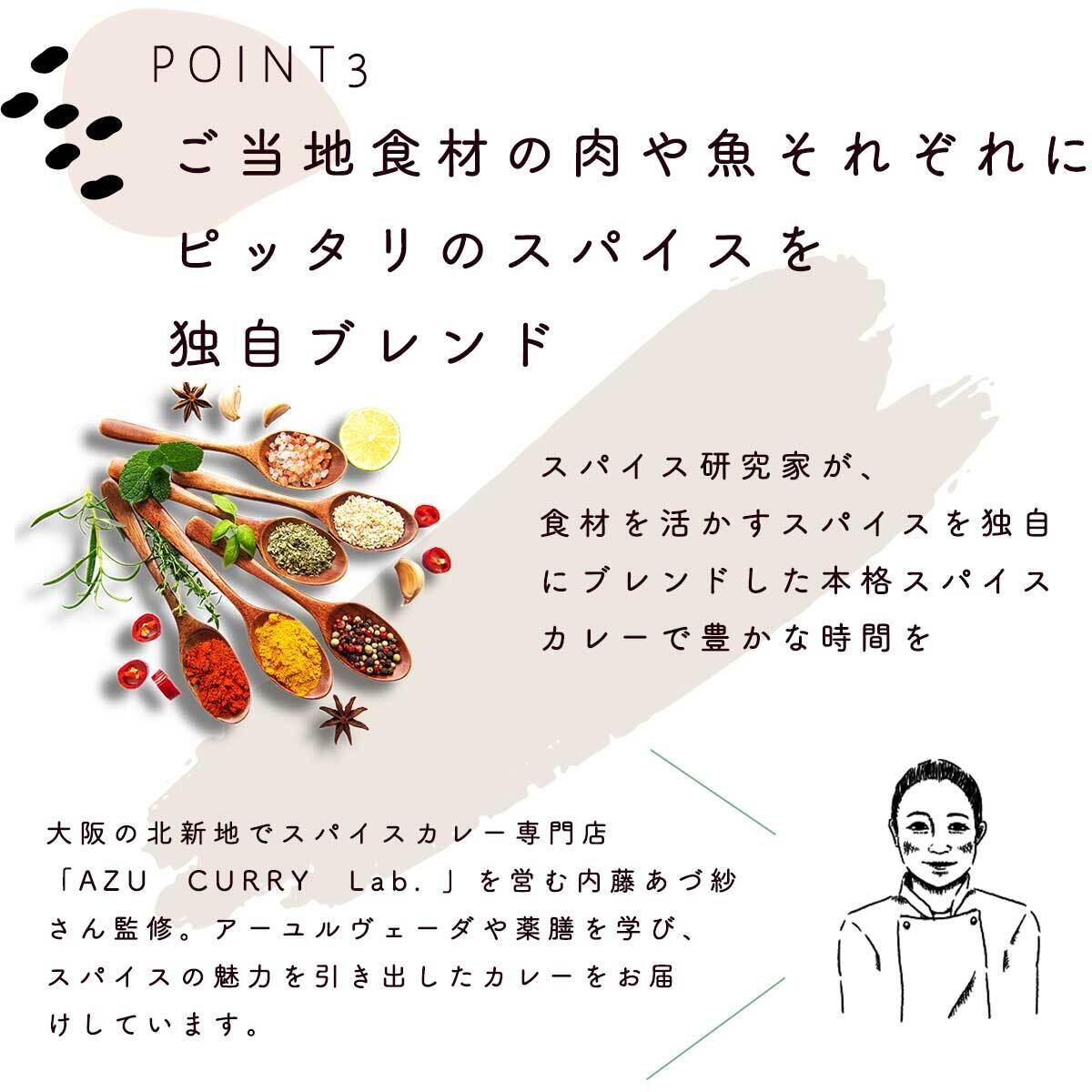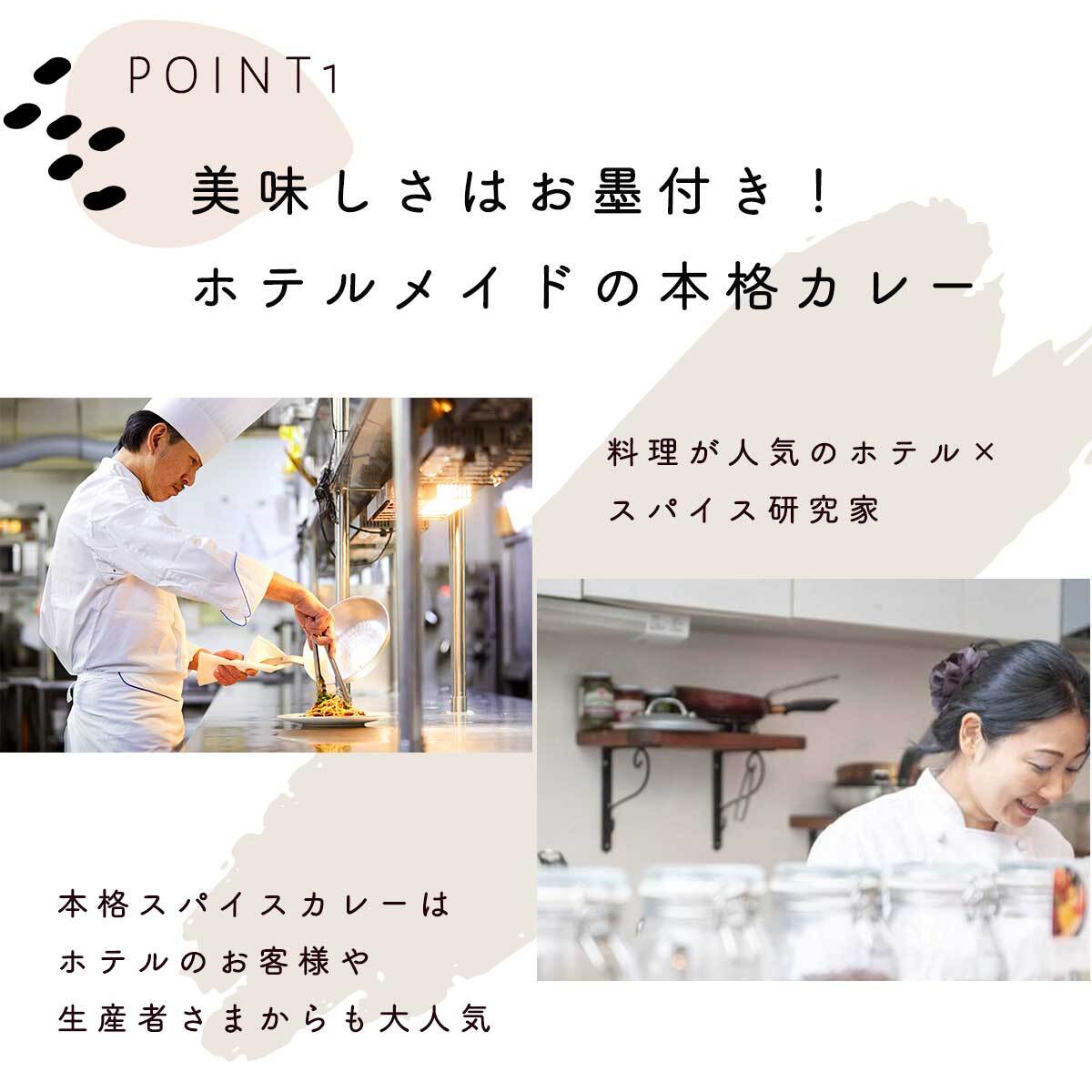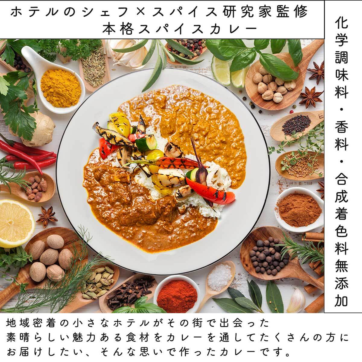 野菜(玉ねぎ、じゃがいも)(国産)、豚肉、トマト・ジュースづけ、ソテーオニオン、チキンエキス、植物油脂(菜種)、クミン、レンズ豆、黒砂糖、みそ、コリアンダー、おろしにんにく、 フェネグリーク、おろししょうが、ウコン、食塩、山椒、スターアニス、ナツメグ、酵母エキス、ブラックペッパー、赤唐辛子、ローレル、(一部に豚肉・鶏肉・大豆を含む)